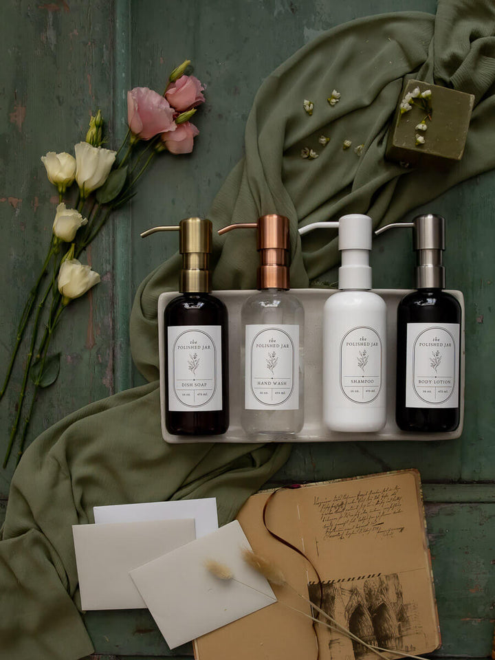Our French Modern Collection just got even more luxurious with the addition of our foaming pump designed exclusively for The Polished Jar bottles. Now you can love the Provencal style of this collection’s lovely botanical label while enjoying the ease of foaming soap. No need to lather, no bars to fuss with, just rich, soft bubbles to easily wash with. Our foamer pump is designed to perfectly fit our plastic bottles and comes in an array of materials to fully customize your look. Choose from white matte, black matte, brass, gold, copper, and stainless steel.